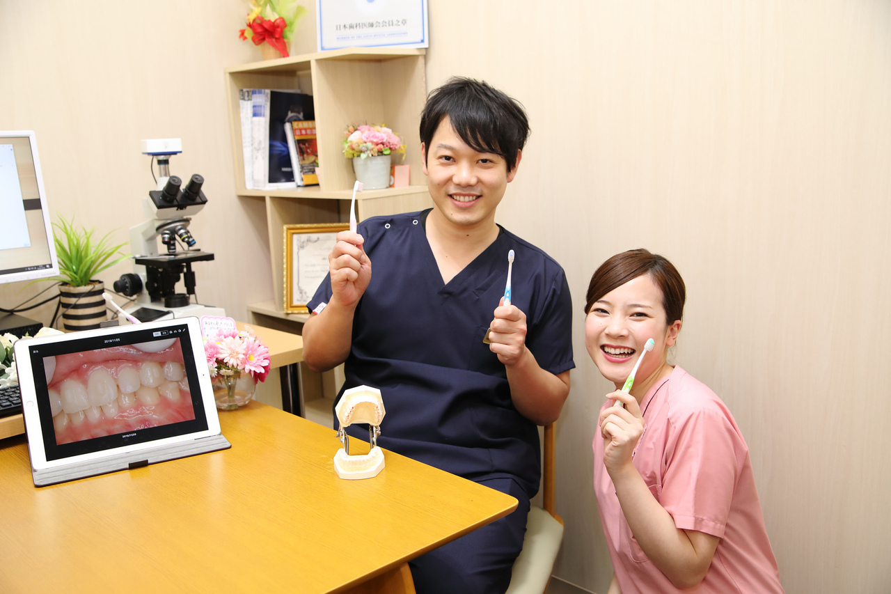 (当医院はブラッシング指導を通して、患者様とコミュニケーションを深め、患者様が自ら進んで口腔ケアを行い、予防への意識を高めてくださることが最も重要だと感じています。)